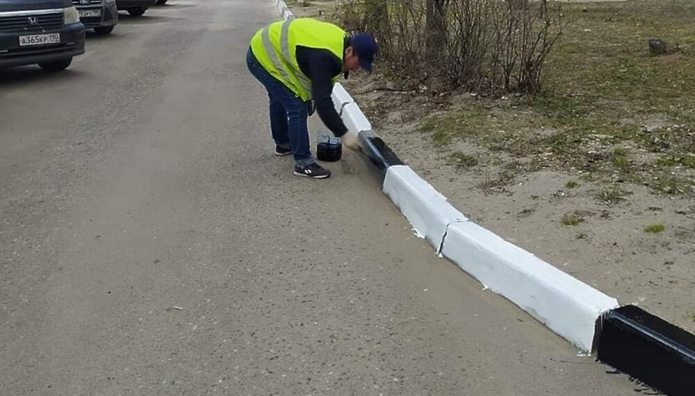 Бордюры покрасили у ряда домов в Климовске