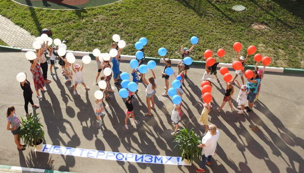 В мероприятии приняли участие воспитанники дома культуры, детского сада №20 «Веснушки», жители поселка.«Флешмоб «Нет террору!» проходил (17 июля – ред.) на площадке у нашего филиала сельского дома культуры. Так как погода радует, а дети хотят поиграть на улице, мы решили, что не стоит рассказывать о вреде терроризма в четырех стенах и выбрали формат, который наиболее будет интересен маленьким жителям. Мы выдали участникам воздушные шары в цветах российского флага и выстроили из них слово «Мир». Всего в мероприятии приняли участие около 40 человек», – сказала одна из организаторов мероприятия Галина Филиппова.